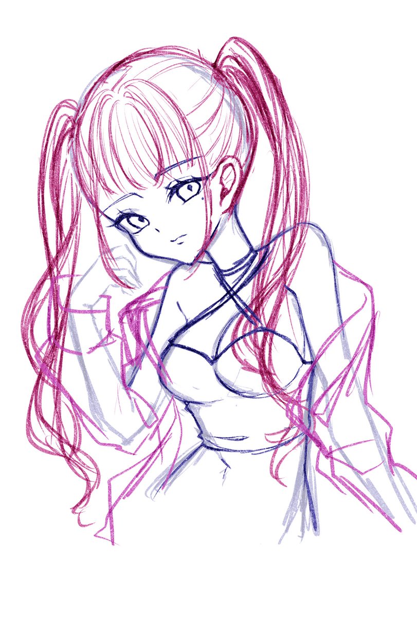 1 17 最近絵あげれてないから落書き2枚あげとく ツインテ被ってしまった 22/07/17 22:23