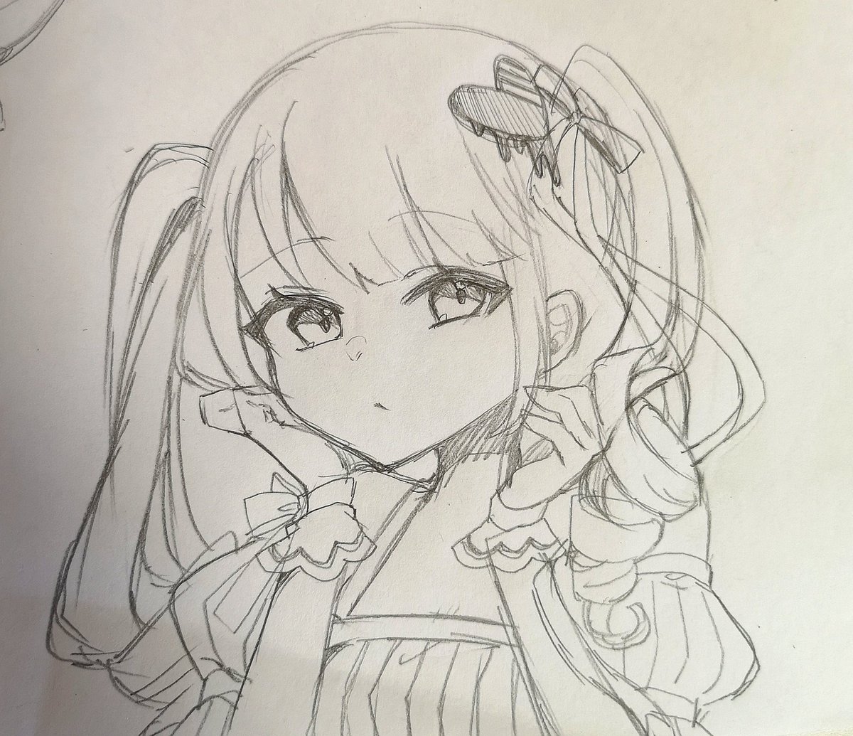 最近絵あげれてないから落書き2枚あげとく ツインテ被ってしまった