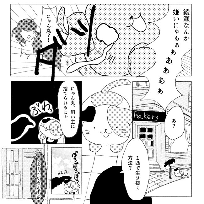 パン屋のにゃん丸 363 #パン屋のにゃん丸 #漫画が読めるハッシュタグ #創作漫画 #創作好きさんと繋がりたい #毎日投稿 #絵描きさんと繋がりたい にゃん丸描きたさが強いのに人間描いて泣いてる。でも綾瀬とにゃん丸の出会いを知ってもらうために頑張る。