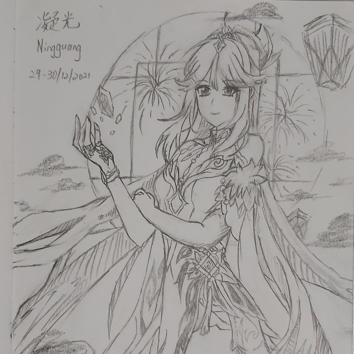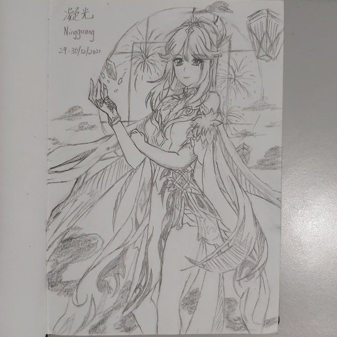 凝光Ningguang💛 新しいドレス New dress 新礼服👗 練習 Practice 练习✍ 彼女は描くのが少し難しい She is kinda hard to draw 他有点难画 😭 #rkgk #GenshinImpact #Ningguang #dress #pencilsketch