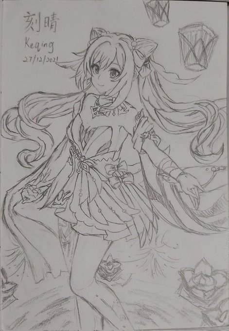 刻晴 Keqing 💜 新しいドレス 新礼服 New dress 👗 練習 练习 Practice✍ #rkgk #GenshinImpact #Keqing #dress #pencilskirt