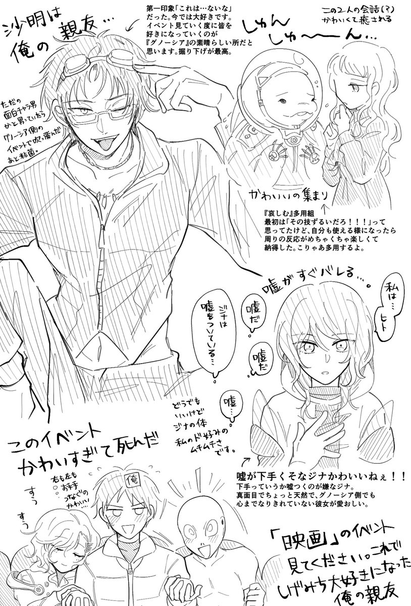 7 29 グノーシアしながら描いた落書きと感想。もっと色々描きたいけど入り切らないのでとりあえずこれだけ⚠️オリジナル主人公がいます 23/01/23 23:16