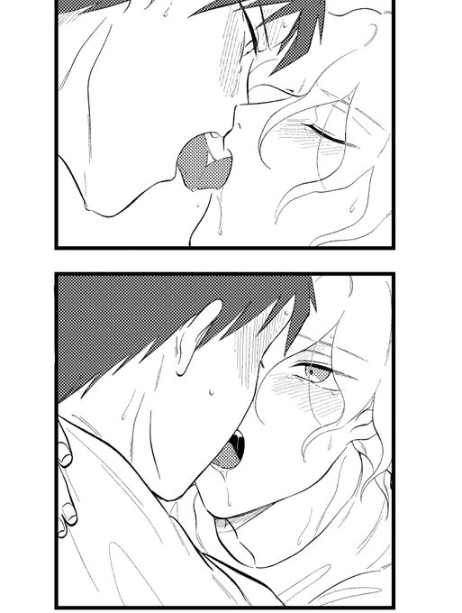 21 124 久しぶりに自カプ作品摂取出来たのが楽し過ぎて気付いたらキスの日終わってた…😅とりあえず原稿のちゅ〜のコマ上げておきます。性癖全振り 23/05/24 00:42