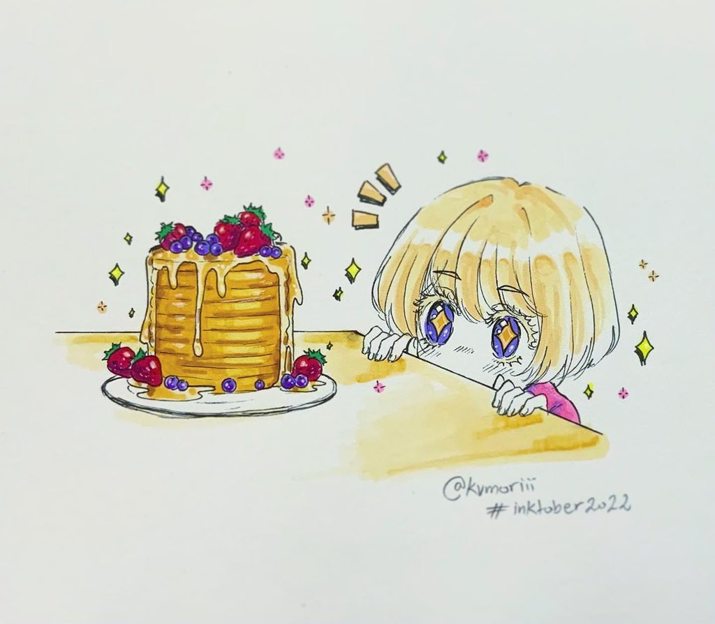 Inktober 2022 Day 27 - Snack 。 。 。 #inktober2022 #inktober2022day27 #inktober #ink #art #inkart #inktober52 #markerart #snack #food #イラスト #パンケーキ #일러스트