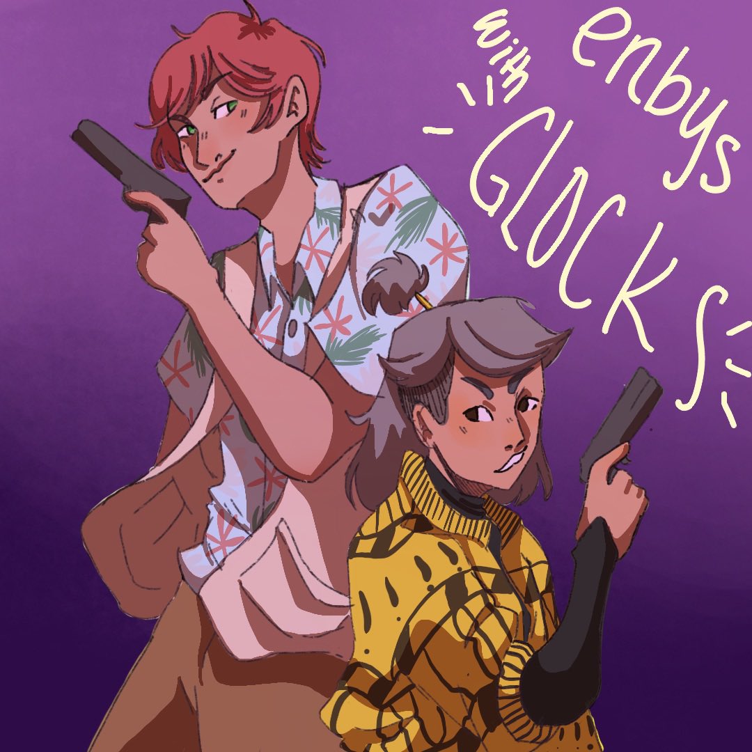 happy pride !! semi-old drawing of a friend and i’s ttrpg characters who were both chaotic and (sometimes) law-breaking enby dangers #PrideMonth #Pride #motw #MOTW #ttrpg #TTRPGs #dnd #dndart #dnd5e #digitalart #commissionsopen