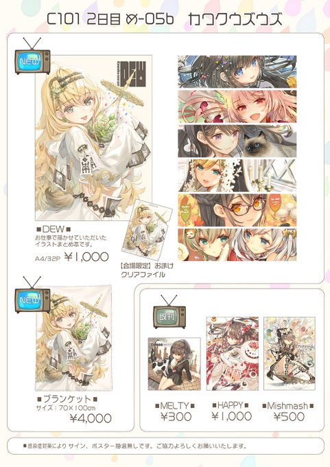 C100お品書きです!【1日目( 土)東1 C-39a】 新刊は趣味で描いたりしたイラストを集めた本になりました。 新刊の書店委託で予約が始まっていますので、こちらもよろしくお願いします✨ メロンブックス→ melonbooks.co.jp/detail/detail.… とらのあな→ ecs.toranoana.jp/tora/ec/item/0…