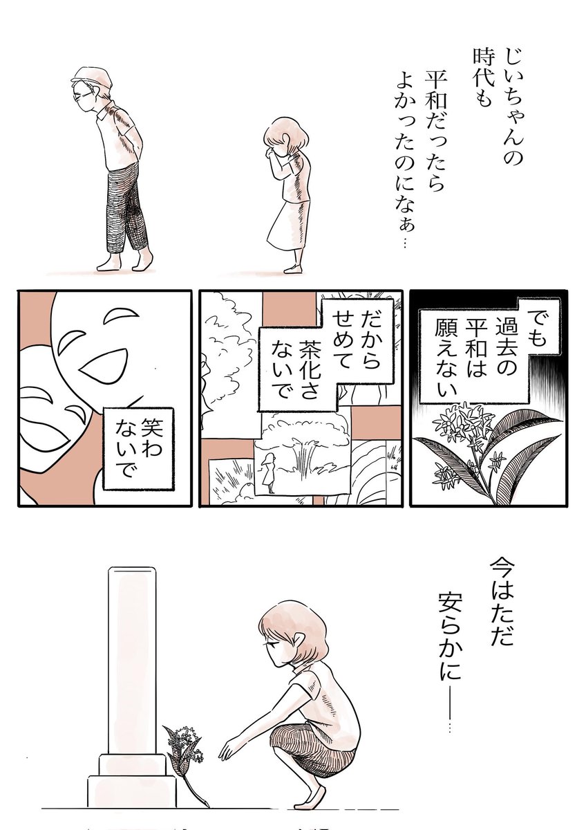2ページ目、本当はこう載せたかったんですが...読む順番が違うと読者側にはノイズだろうしなあと断念しました。Twitterで見開きは難しい🤔お読みいただきありがとうございました。もうどこにも核が落とされませんように。