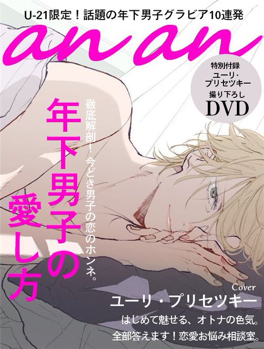 134 1345 前にコラボで描いたユリオの絵をメルモさんが某雑誌風に加工してくださいました〜🥹普通に売ってそう…〜!!読みたい! 22/06/18 14:44