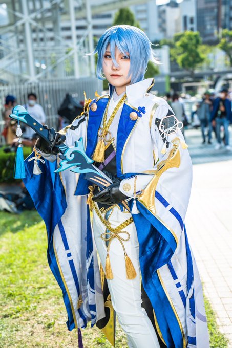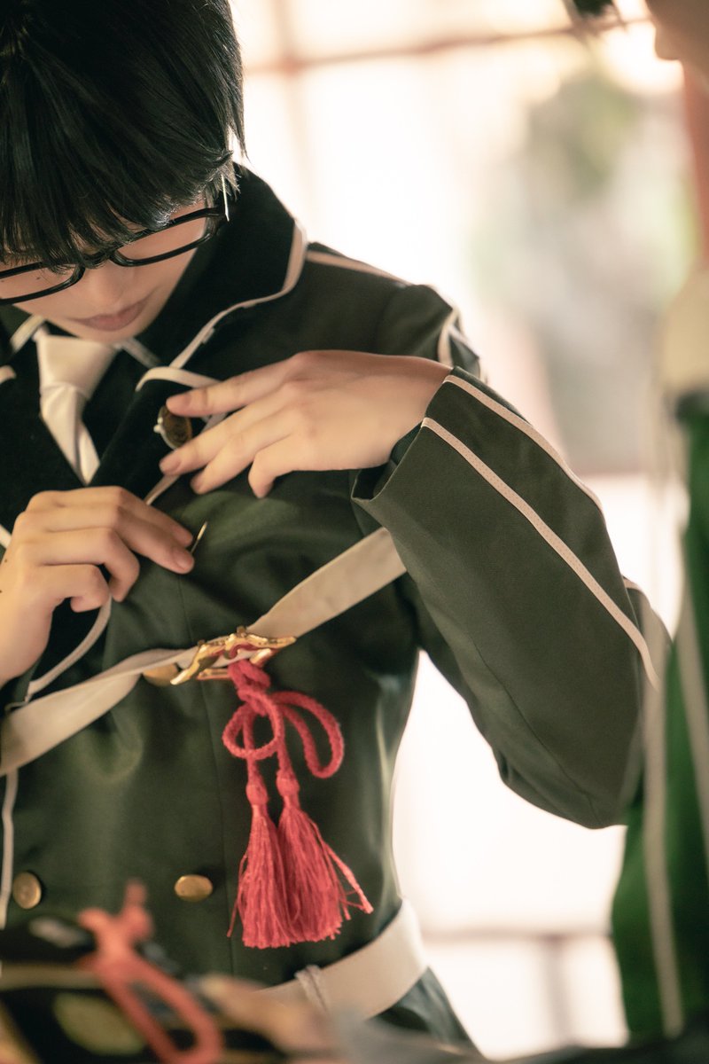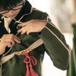 これ安ピン付けてるところなんだけど、めちゃくちゃ良い角度で撮っていただいたので見て見て🥰 りいだあが篭手を持っててくださってるの越しなのも最高…❤️🔥 📸はTAKAさん(@TAKAcosphoto)です🙏 #秋晴れの空と江1002