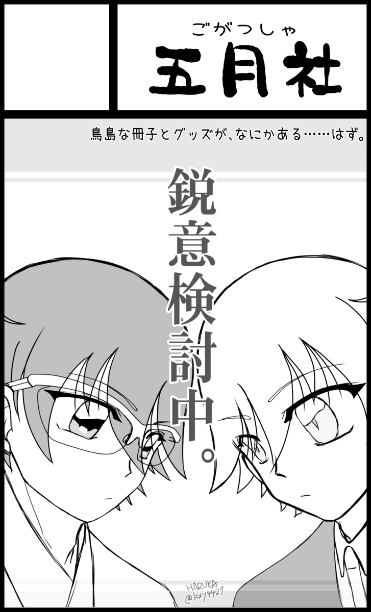 11 13 2/19 広コミ(広島産業会館 東展示館) スペース:B02 五月社 47ts鳥島冊子とアクキーとかチャームとか持って参ります。 たぶん、鳥くん(普段着)コスしてると思います。 (早めに撤収する可能性もありますので、もしかおいでの方いらしたら、コメントとかしていただけると感謝します。) 23/02/11 16:25