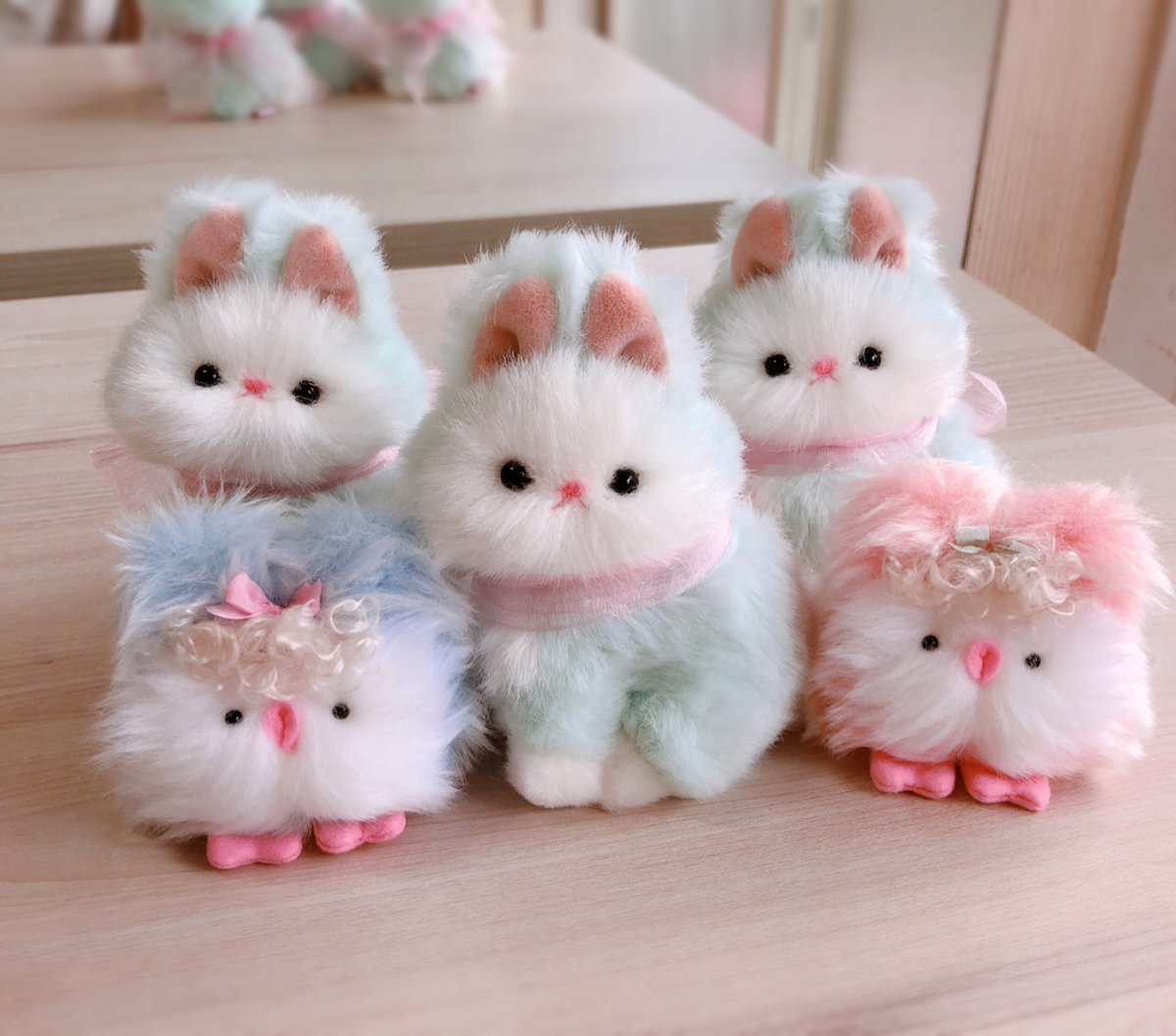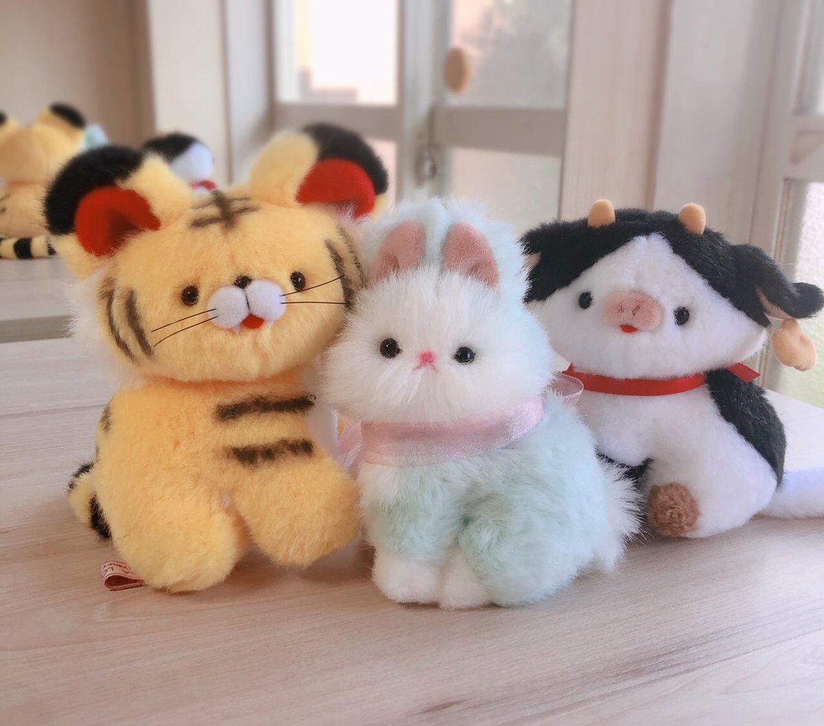 今までの子と大きさ比較写真🐰🐯🐣 小さい赤ちゃんサイズで首は固定です! 크기는 이전 인형들보다는 조금 작은 편입니다. 목은 고정되어있습니다🐰