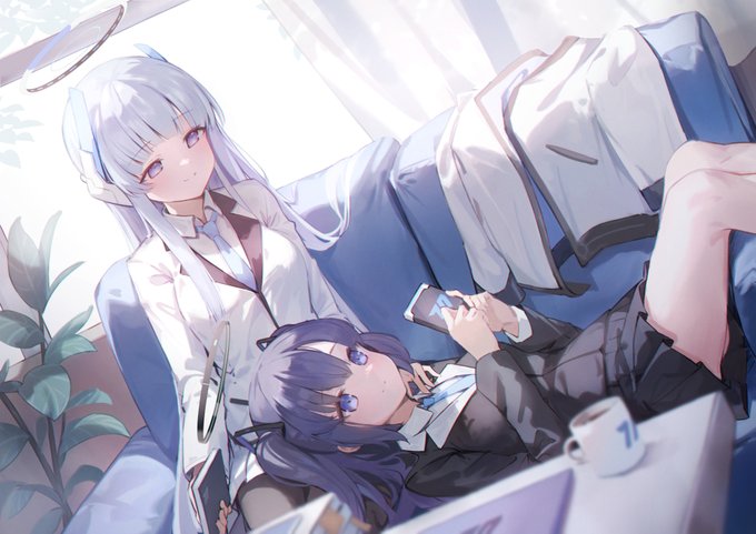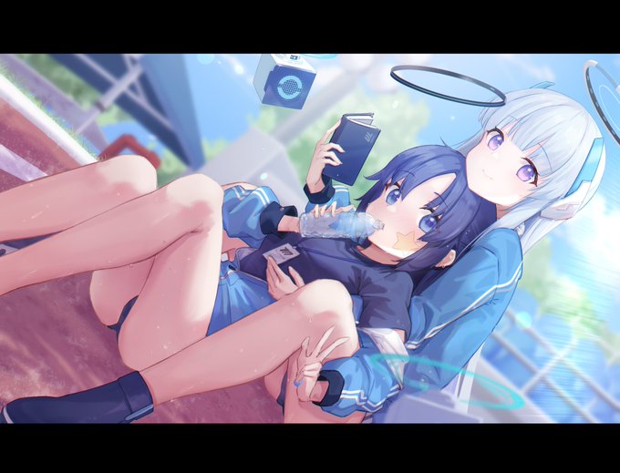 夏コミ新刊表紙絵になるユウカとノアちゃん🤍💙🤍 #ブルアカ