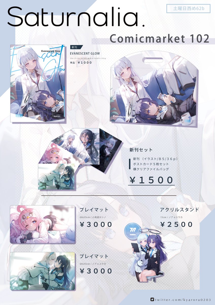 コミケ102のお品書きです! スペースは【土曜日西め62b】 よろしくお願いいたします!✨
