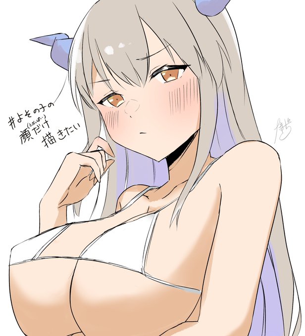 #よその子の顔だけ描きたい 極激遅です。3人目は、フィンさんち(@Fiin36772 )のライラさん 白ビキニ似合う、、、