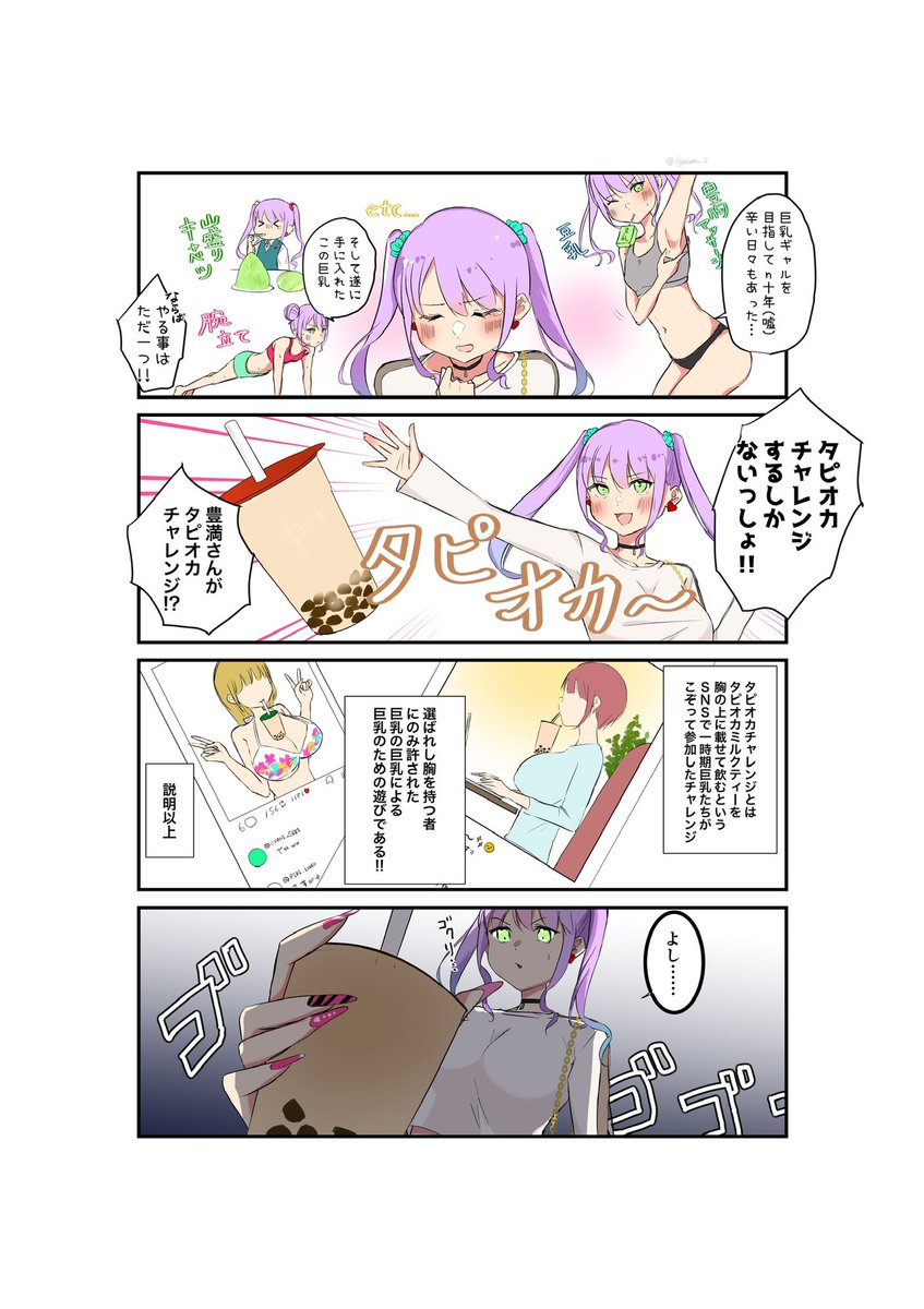 #創作漫画 #マンガが読めるハッシュタグ ⑩貧乳がコンプレックスのギャル 貧乳ツインテギャルのタピオカチャレンジ🧋💜(1/2)