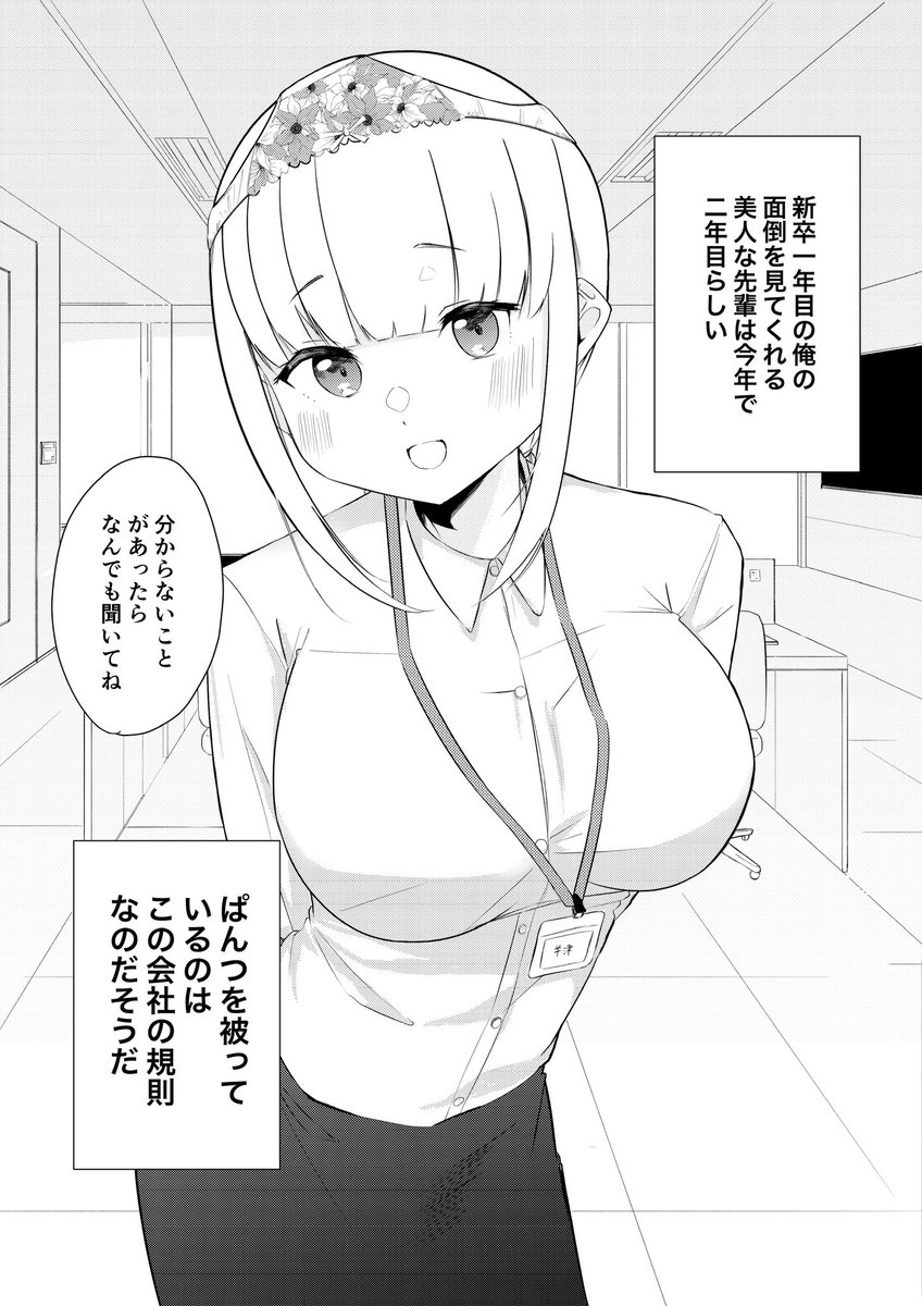 #イラスト 新しく入った会社の先輩が美人だけどぱんつ被ってる