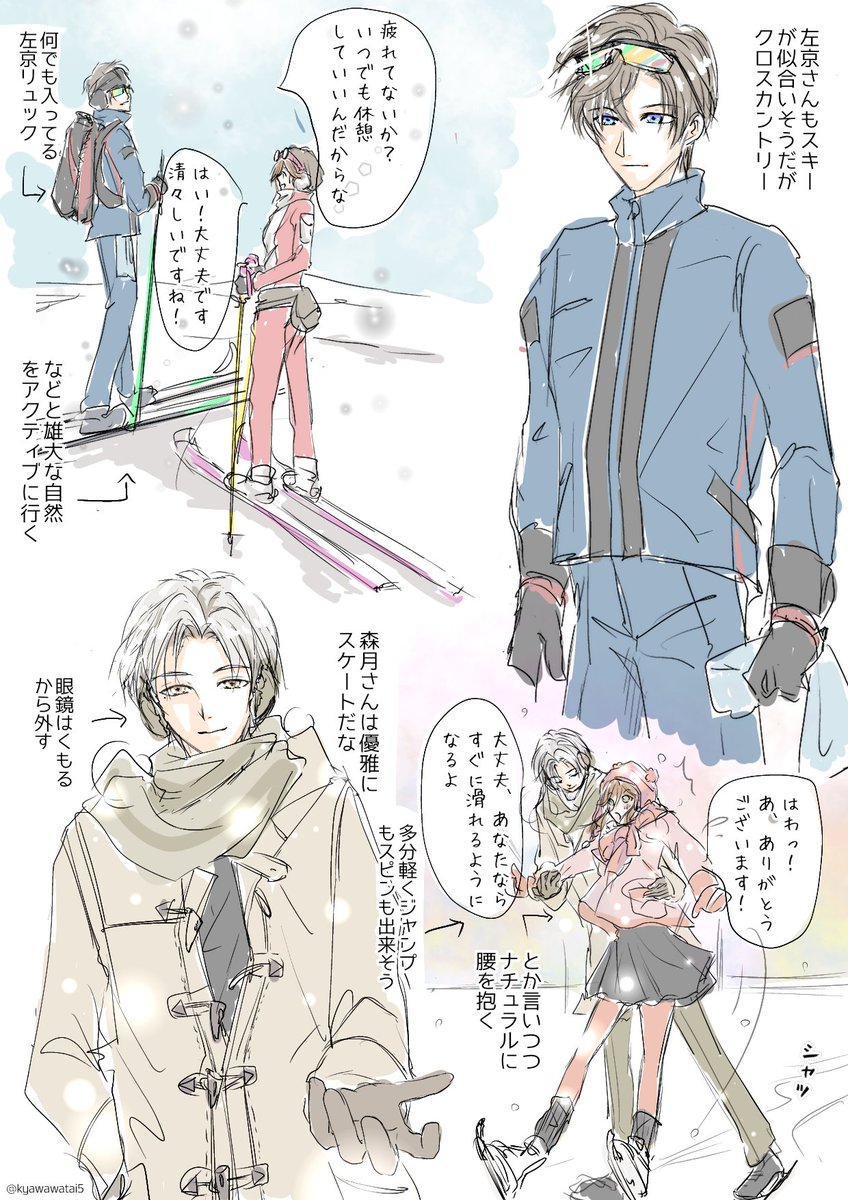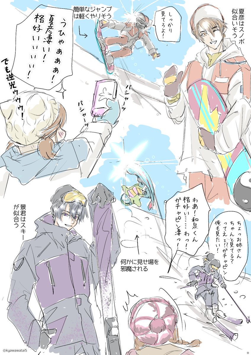 似合いそうなウィンタースポーツとNXXメンを妄想して雑に落書き(妄想!)←大事な事は二回言う。 全員スキーもスノボもスケートも出来そうだけど