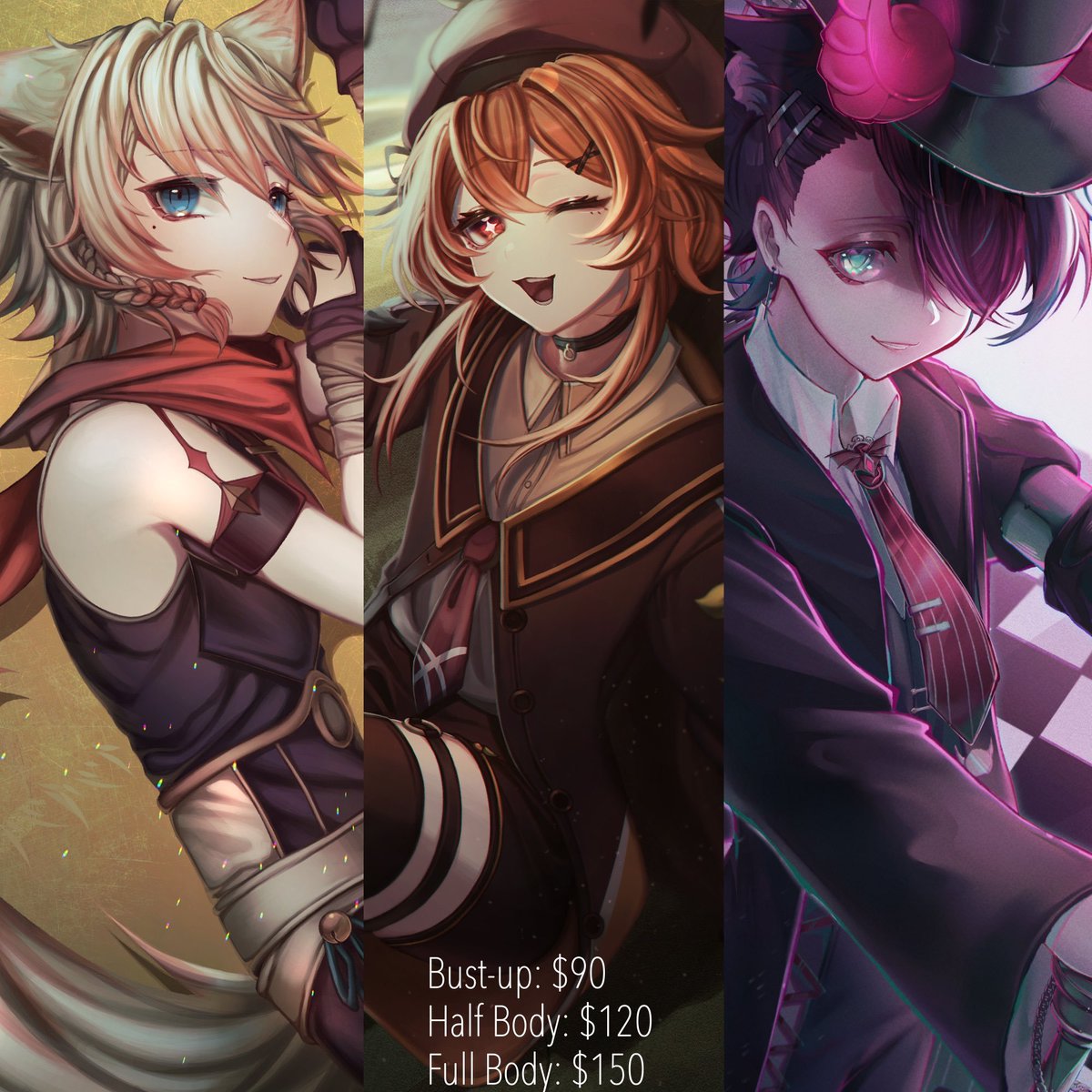 Hello! My commission slots are open again! RTs are highly appreciated! <3 FLAT-COLORED: Headshot-$25 Half Body-$35 Full Body-$45 Shaded: Headshot-$50 Half Body-$70 Full Body-$90 Check bio for more samples and my T.O.S! #ArtCommission #artcommissions #artph #commissionsopen
