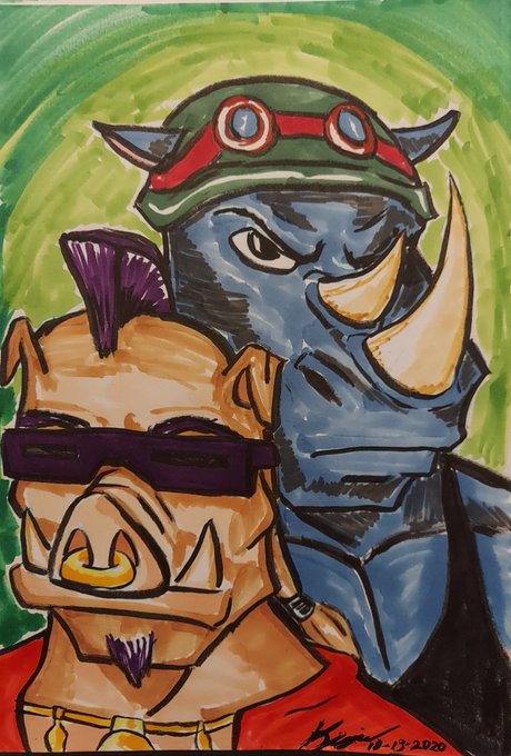 If you're keeping track, it's Day 13! This time, #Villaintober is a twofer! They're big, they're bad, they're brutal... and they're boneheads. But to turtles, they're a constant threat! It's #Bebop and #Rocksteady! #inktober2020 #TMNT