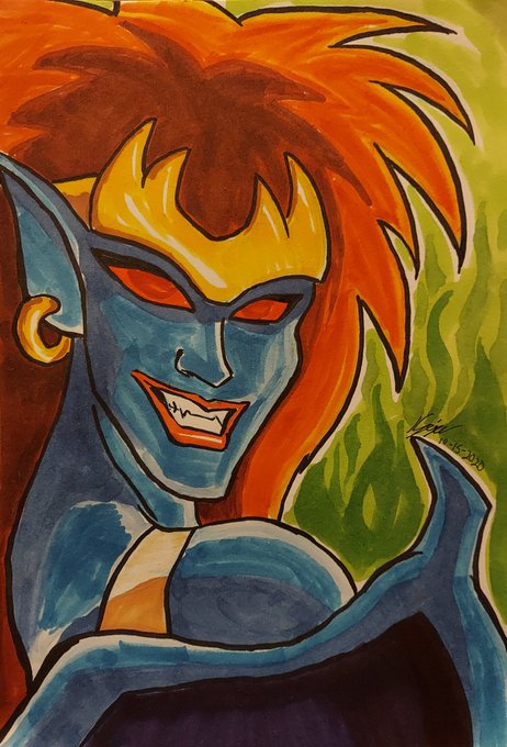 She's bewitched man, beast and sprite. She's felled kings and broken hunters. And she's put Goliath through more hell than a boy with a sling ever could. Given captivating voice by @Marina_Sirtis , Day 15 belongs to Demona! #Villaintober #inktober2020 #gargoyles #disneyafternoon