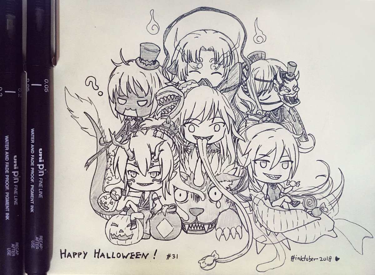 Day 31. HAPPY HALLOWEEN ~~~~!!! 🎉🎉 #foodfantasy #foodfantasyfanart #foodtober2018 #foodtober #inktober #inktober2018 #day31 #食之契約 #happyhalloween #fallenangels #aizen #inugami #devouringbeast #orochi #spectra #queenconch #ukemochi