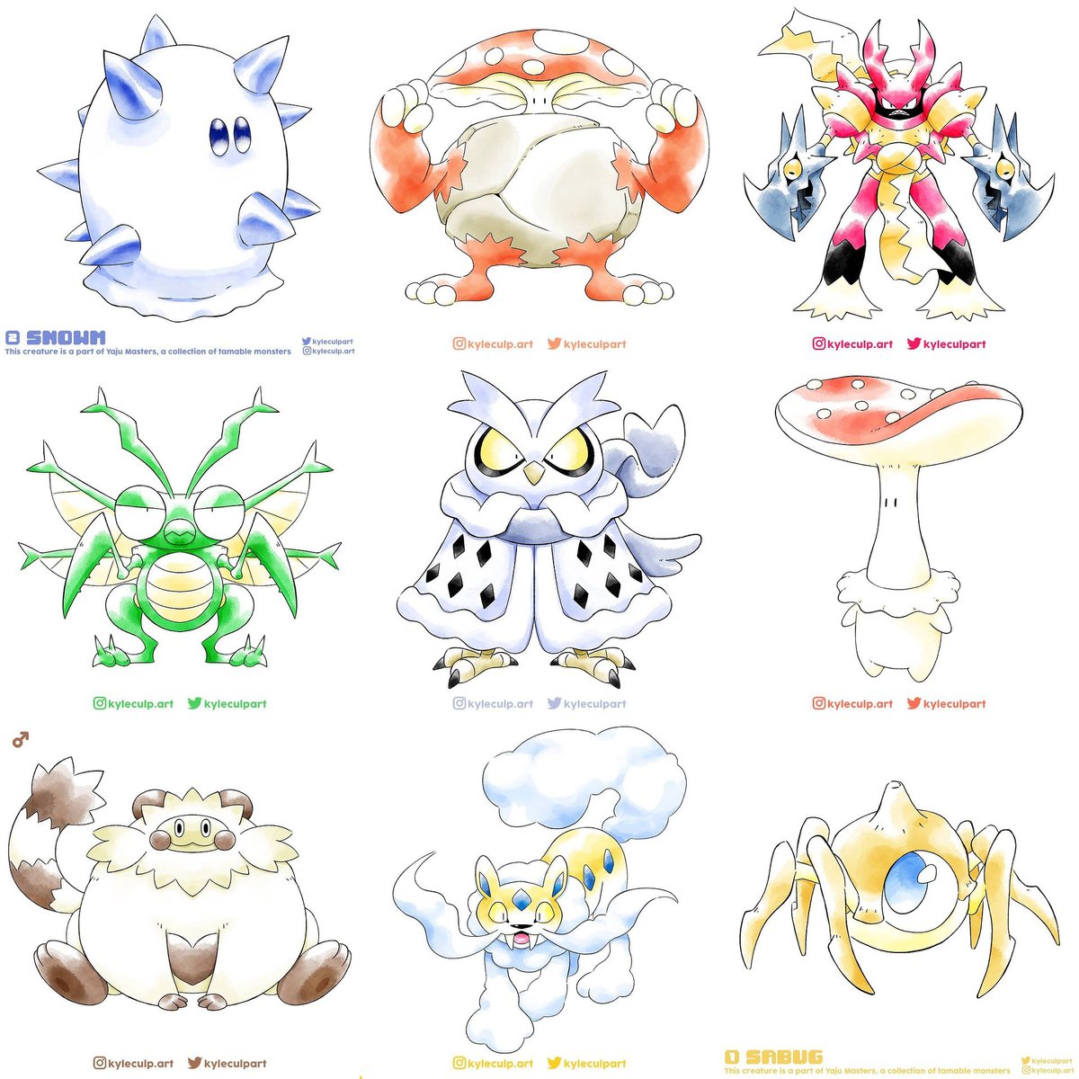 🐸For #PortfolioDay here's my 25 most recent fakemon (that I can publicly show). Some of them are for a project called Yaju Masters, some are pokemon, and some are commissions. 🐝Monster Gallery kyleculpart.tumblr.com 🐧Ko-Fi (Commissions + Shop) ko-fi.com/kyleculpart