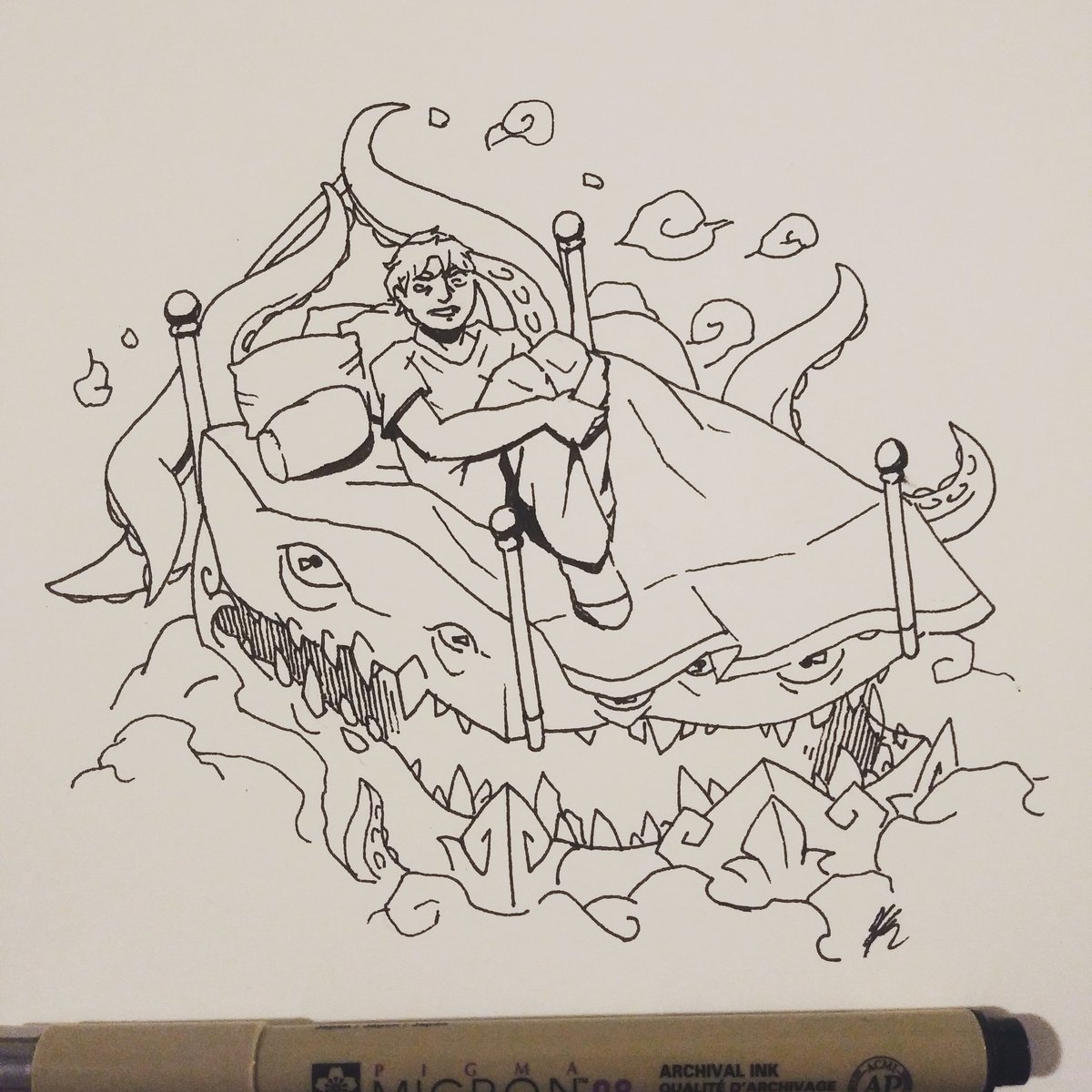 Nightmare, manifest. This one is like almost 5 days old, I apologize. Getting caught up now. Grades > drawing, unfortunately. #inktober2020 #inktober #inktober2020day21 #sleep
