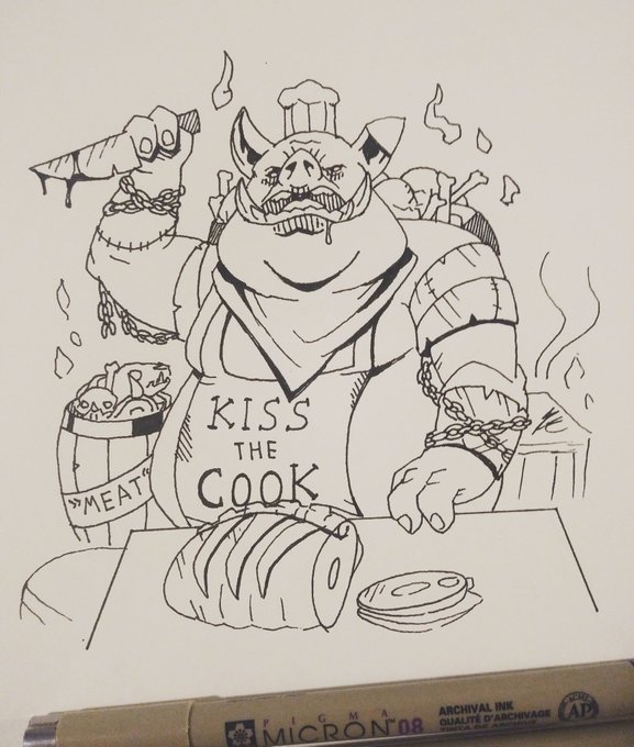 On second thought, i'm not sure that's all animal meat. Very late.. catching up.. haven't had much time. #inktober2020day22 #inktober2020 #inktoberchef #chef #Inktober