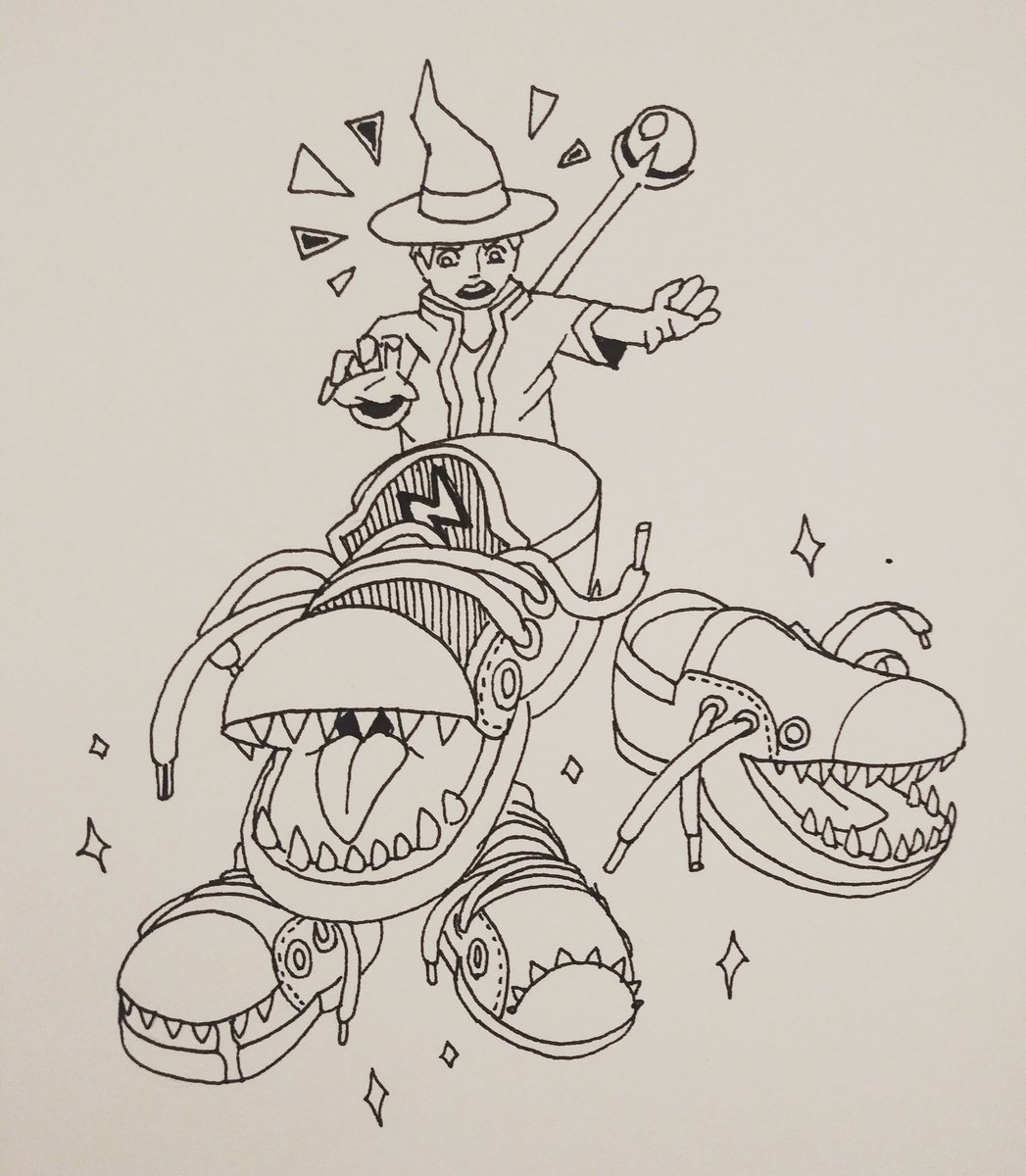 Always make sure to keep steady while casting Animate, least you misfire and create a bunch of living, biting sneakers. #inktober2020day29 #inktober2020 #Inktober #Shoes