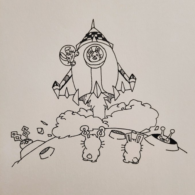 A year ago they took off.. now they land? Who are those folk dwelling on the lunar surface? 🐰👽 #inktober2021