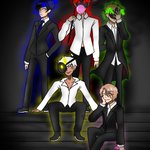 Demon brothers in their colour insignia coordinate Disney dresses #obeyme #obeymefanart #Obeymelucifer #obeymemammon #obeymeleviathan #obeymesatan #obeymeasmodeus #obeymebeelzebub #obeymebelphegor #crossover #dresses #drawing #draw