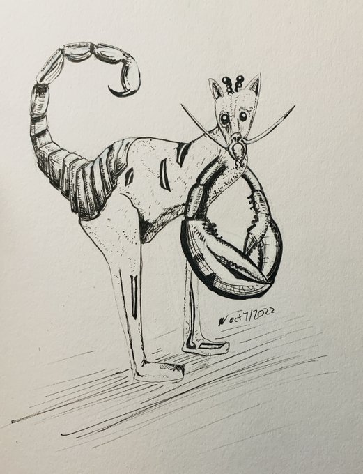 Lobster, kangaroo and scorpion. aka a strange monstrosity. #nft #nftart #nftartist #inktober #artistsoftwitter Thank ya to kingbee for the prompt.