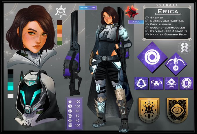 Character sheet for @Foxybockcs !! It was a pleasure to work on your Hunter again! #Destiny2art #gameart ! Honestly love working on these sheets for others ~