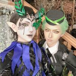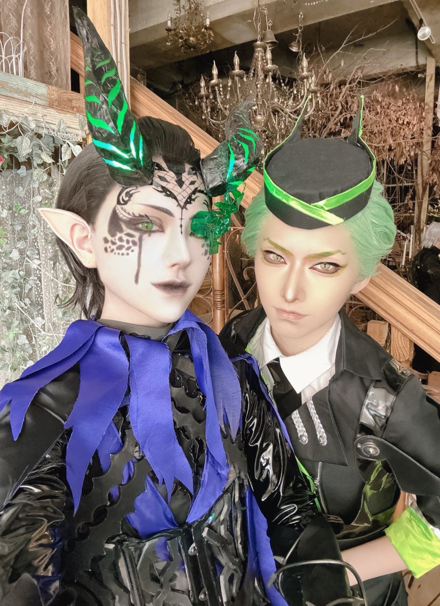 おそくほ! 初マレウスでオバブロしてました👏 衣装はAzuちゃん制作です〜 衣装とても凄いのでちまちま加工していっぱいお写真あげていきたい💪 🦇@Azu30338293 ⚡️@taguti_t_cos ⚔️@s_kr3_3