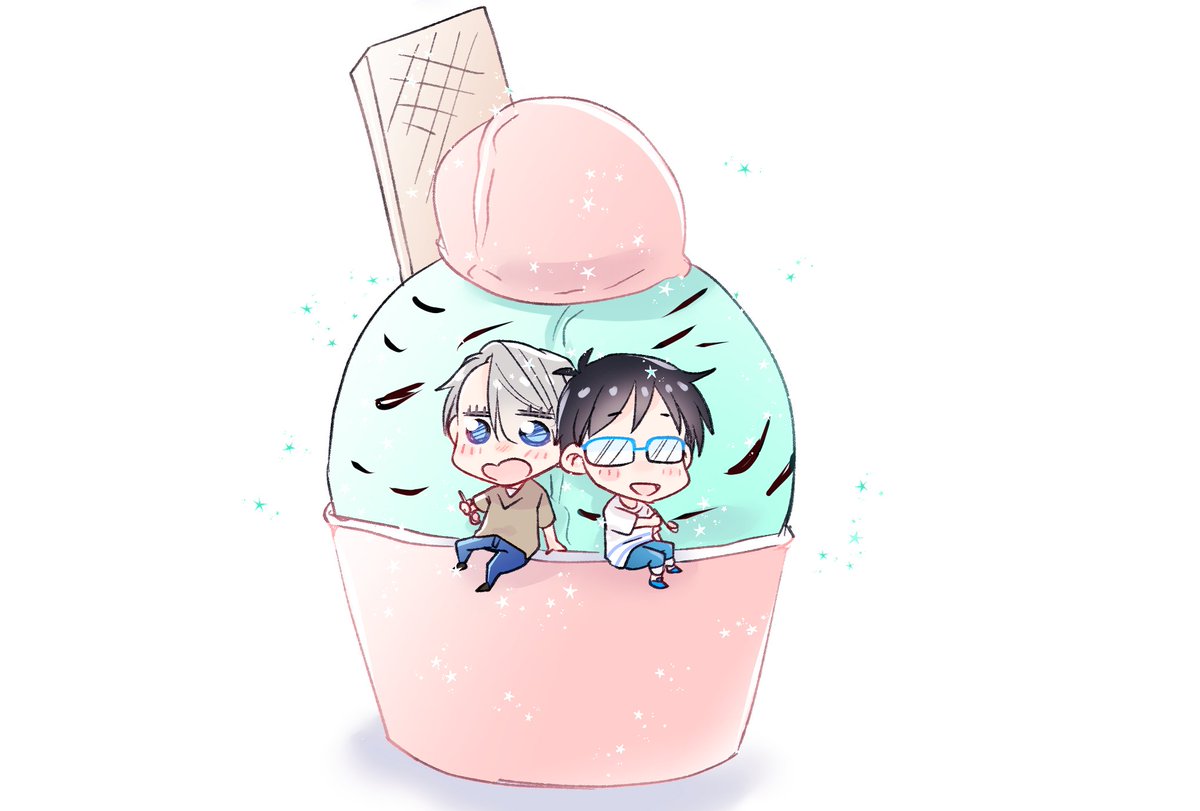 ヴィク勇。 ヴィクトルにないしょで食べたアイスがばれた。