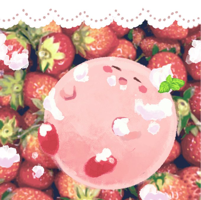 3 45 rkgk もりもりいちごの写真があったので加工してカービィ加筆🍓 いちごお腹いっぱい食べてね〜 22/08/20 00:56