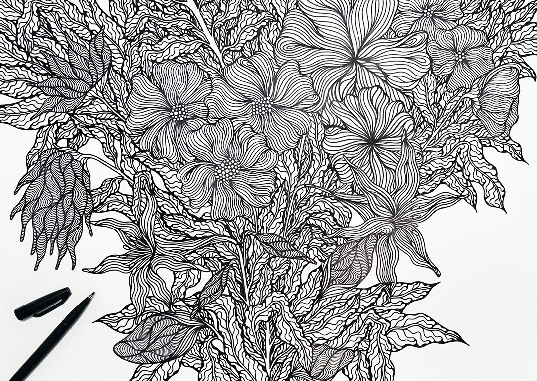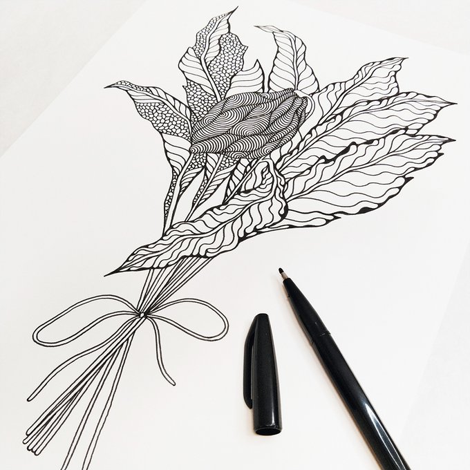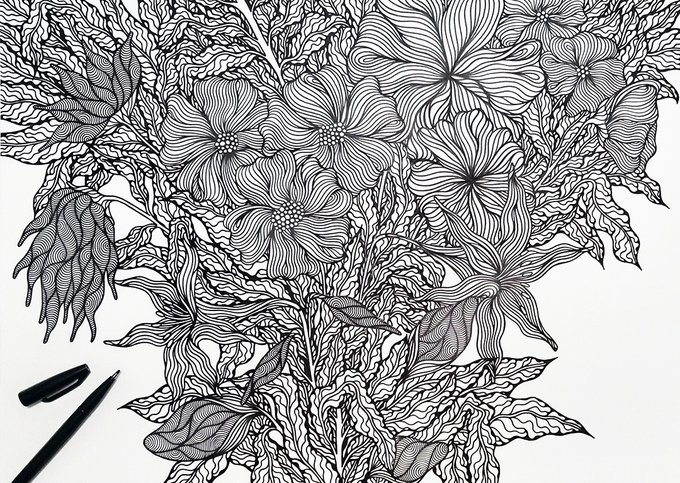 ぺんてるサインぺんS520 ケント紙(B3) #ペン画アート #アート #art #現代アート #絵 #絵を描く #pentel #ぺんてる #サインぺん #ペン画 #フラワー #ドローイング #ボタニカルアート