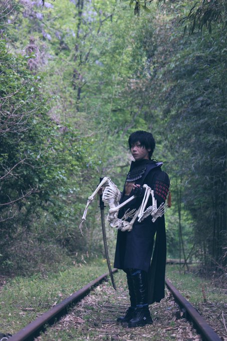 【cos/同田貫】 ⚠︎たぬさに風味 死出の旅路≒逃避行 photo 緋羽さん@chimao3589maori 骨格模型の主はゼリー水先輩@jellynukamiso77