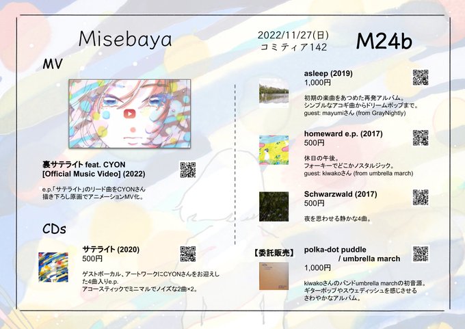11/27(日)コミティア142に参加します。 お品書きや試聴はこちら。場所はビッグサイト西棟1FのM24bですー。 #コミティア142 #コミティアお品書き ↓MV全編 youtu.be/On5PBsgn45w twitter.com/i/web/status/1…