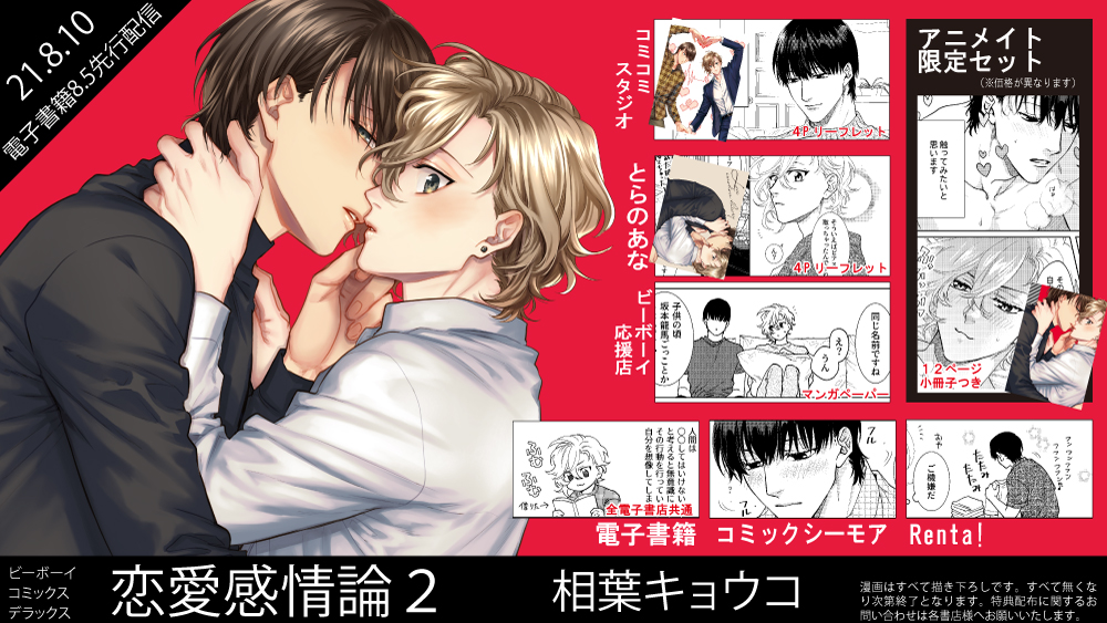 「恋愛感情論2」8月5日伝世先行配信→8月10日単行本発売です!各書店様にて特典もあります、よろしくお願い致します🥰