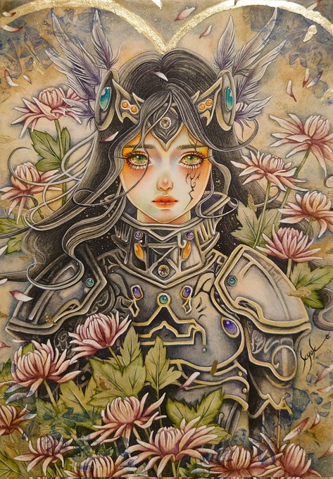 #あなたのぴんく色の作品を見せてください #アナログ絵 #透明水彩 ピンクとミントブルーの組み合わせが好きで定期的に描きたくなります この作品では金箔も使い華やかに…💖 『ただ愛』 2023年制作 個人蔵