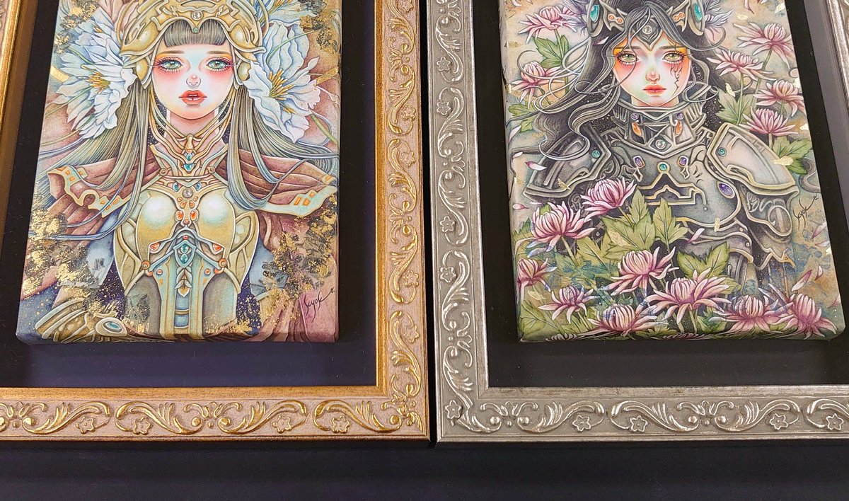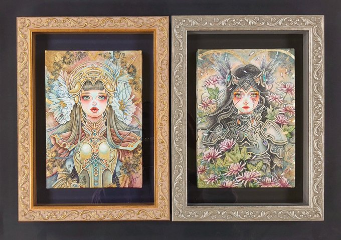 #見た人は無言でストーリー性を感じさせる 絵の制作時はいつもストーリーを考えながら描き進めています 観てくださる方々に、それぞれの物語を感じて頂けたら嬉しいです 『月の鎖』『星の雫』 2022年制作 共に個人蔵