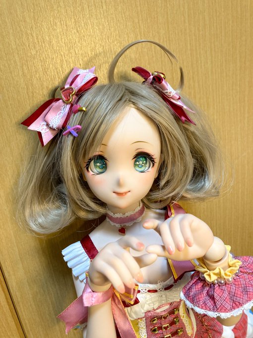 0 12 DD佐藤心にほんのりオーバーメイク(チーク&リップにパステル追加、唇と爪をちゅるちゅるに)&アイを交換しました! おとなのおねえさん感がちょっと増した🎀 #ばらやめめ #デレマスドール部 #佐藤心 23/04/29 23:14