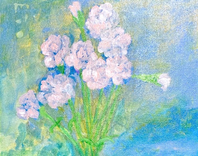 美術教室の体験レッスンに参加させていただきました♪ 丁寧に教えて下さり、楽しかったです❣️ アクリル画をキチンと描くのは初めてでしたが、勉強になりました^_^🌸✨ #アクリル画 #カーネーション #絵描きさんと繋がりたい #絵描きさんフォロバ100