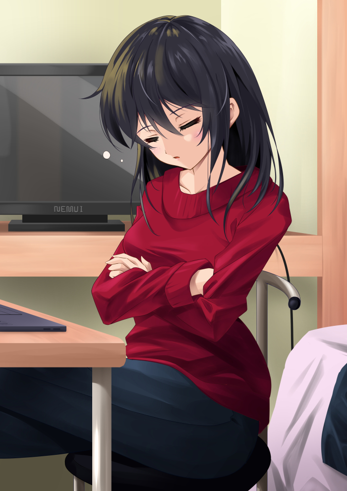 「描くもの思いつかない…というか眠い…」というわけで、もうそれテーマで描くか!と思った次第です👍 私だいたい毎晩パソコンつけたままこのポーズで寝てます😴💤(オイ!) #オリジナルキャラクター #イラスト練習中 #イラスト依頼募集中