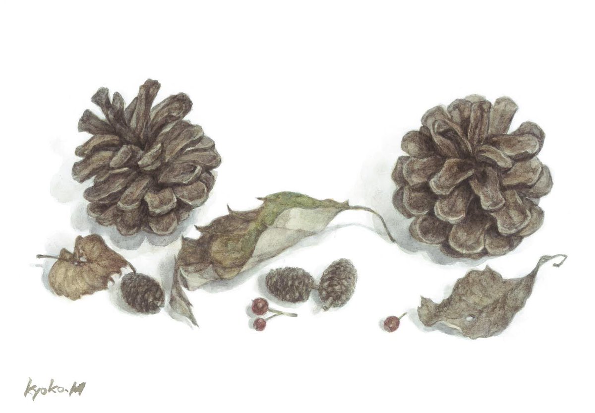 0 3 冬の実-松毬-(2020) 158×227mm 透明水彩、画用紙 #透明水彩 #水彩画 #watercolor #painting #art #acuarela 20/11/27 21:01