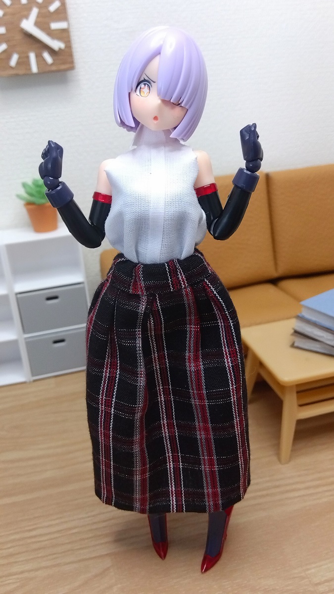 ノースリーブのシャツとチェック柄スカート!😊 #メガミデバイス