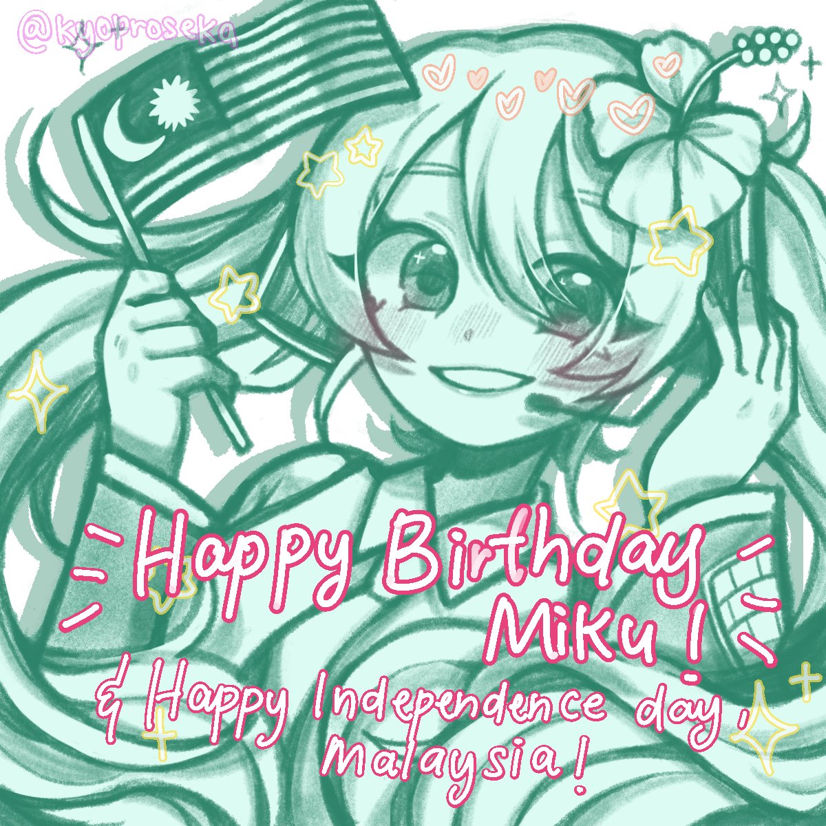 HAPPY BIRTHDAY MY DEARLY BELOVED MIKU AND HAPPY INDEPENDENCE DAY MALAYSIA! MERDEKAAA! #hatsunemiku #prsk_FA