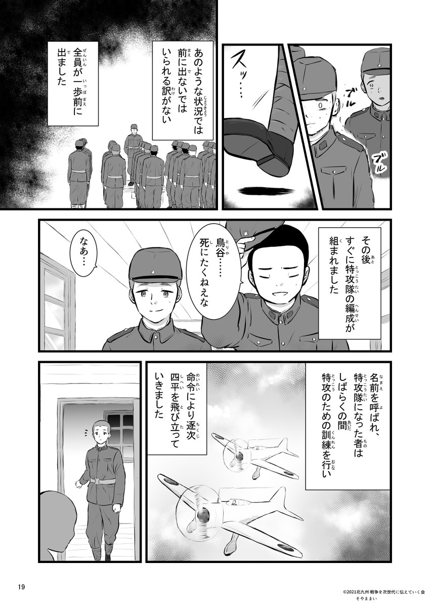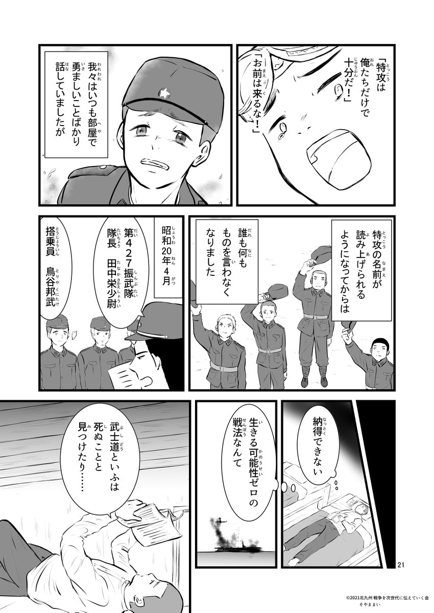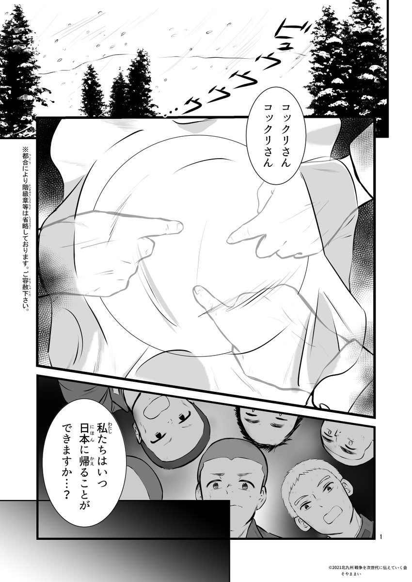 「シベリア抑留を生き抜いて」1 太平洋戦争で特攻隊員、シベリア抑留を経験された鳥谷邦武(とりや・くにたけ)さんの資料や実際にお会いして伺った話をもとに漫画を描かせていただきました。 リプに続きを投稿してきます。 #漫画が読めるハッシュタグ #戦争体験