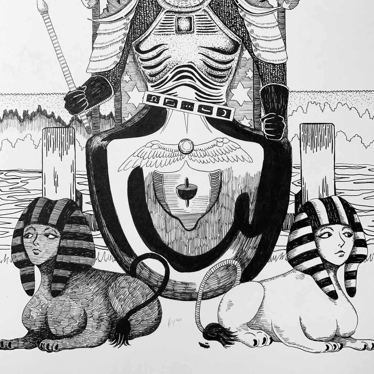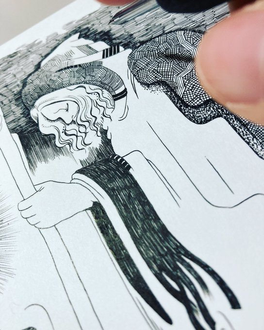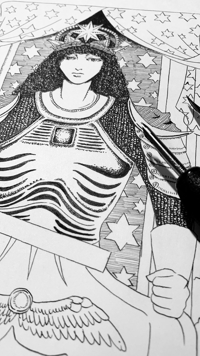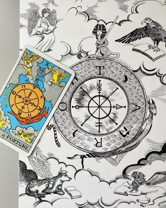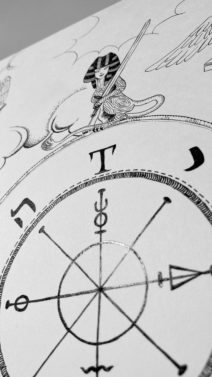 タロットシリーズ11枚目の「運命の輪」がようやく完成〜っ(嬉涙)ようやく大アルカナの半分きた〜っ🖋🙌次の「正義」は夏休みもあるから、もっとサクサク描く! #tarotcards #illustration #drawing #タロットカード #イラスト #ペン画